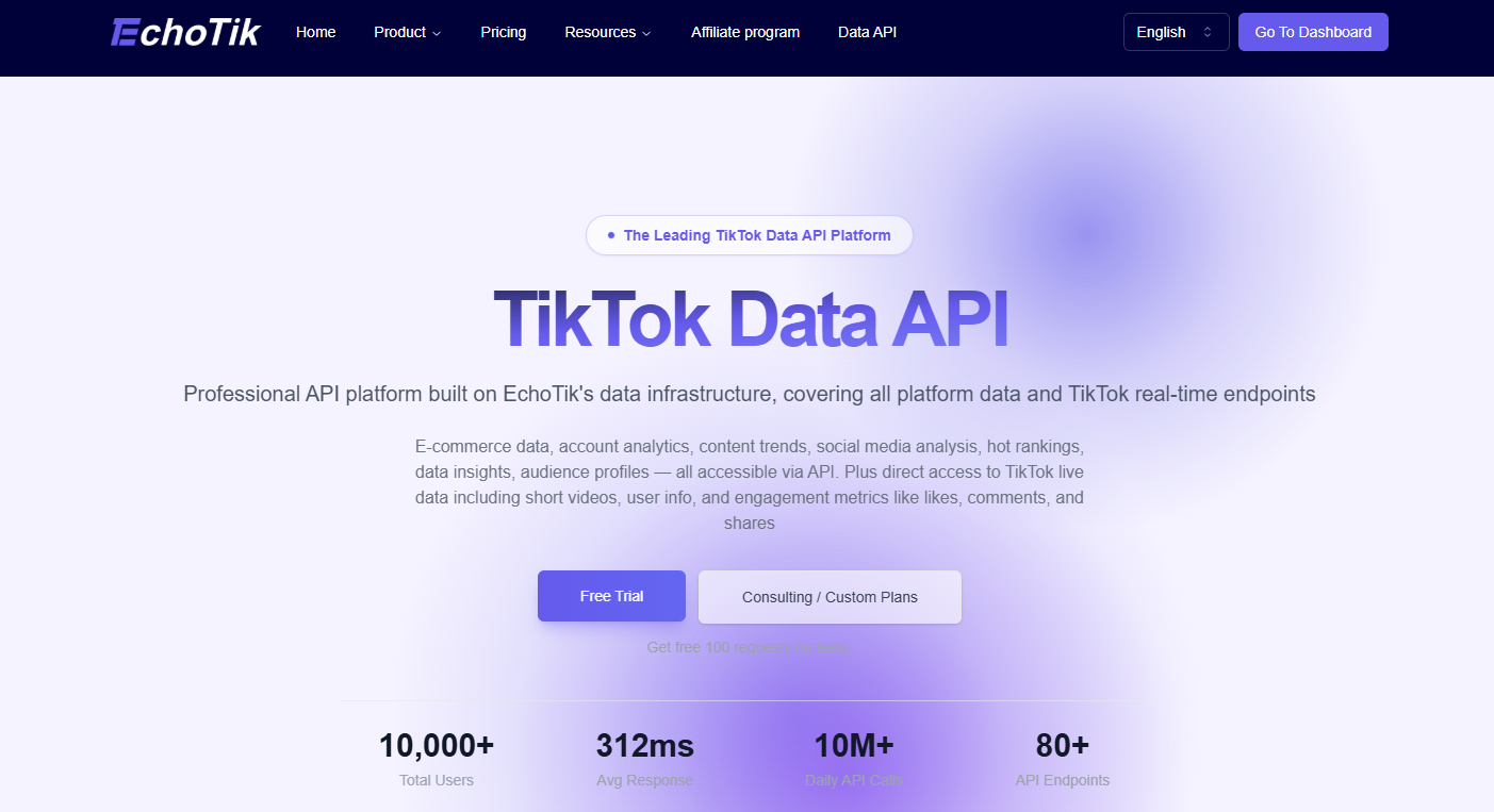 A: EchoTik is a leading third-party data provider that processes public TikTok data at scale. It is widely considered the industry standard for "Commercial Intelligence" where the official API has limits.