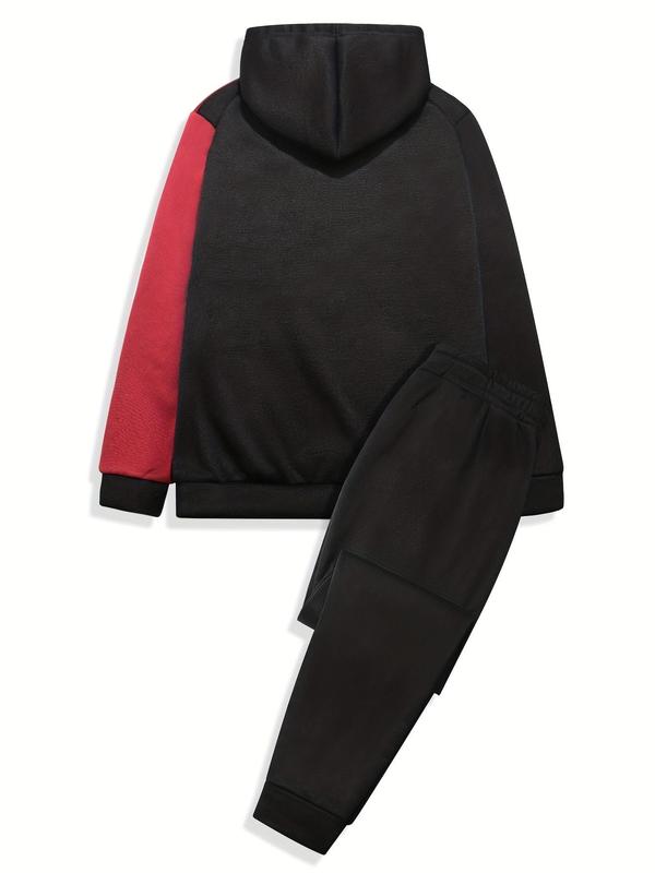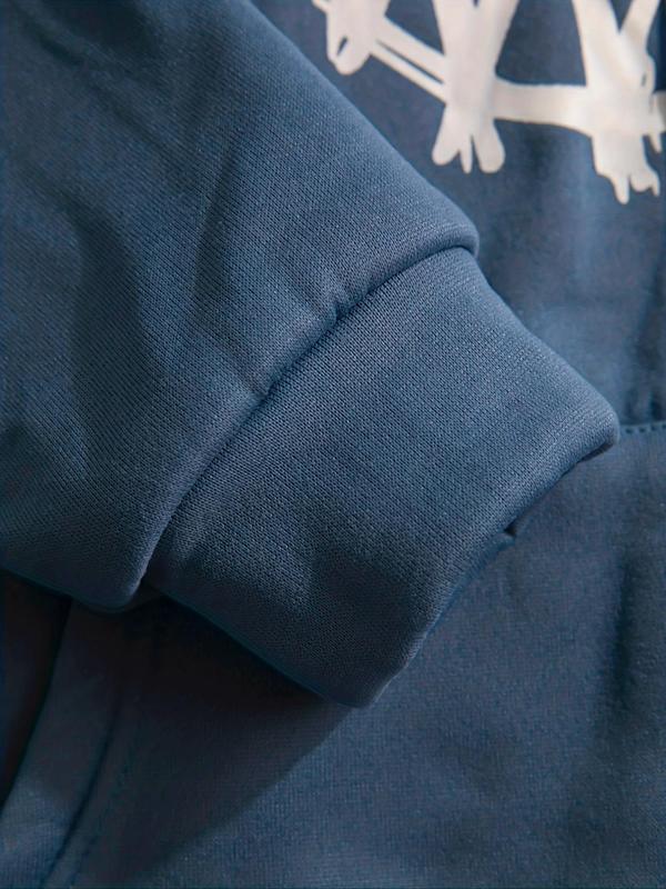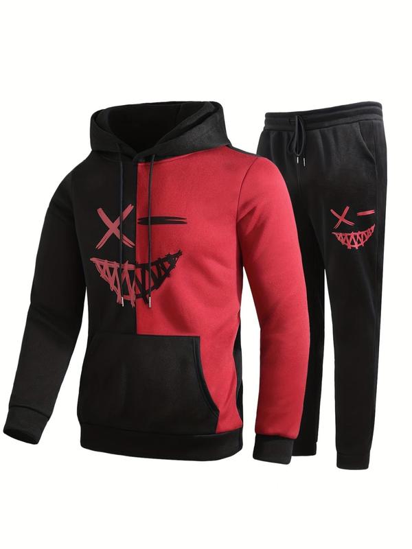 Two-piece Set Men's Halloween Cartoon Print Drawstring Waist Pants Set, Regular Fit Stylish Thermal Lined Sweatshirt & Pocket Jogger Pants for Fall, Full Sets Men Outfit Streetwear Valentine's Day, gift