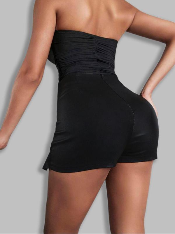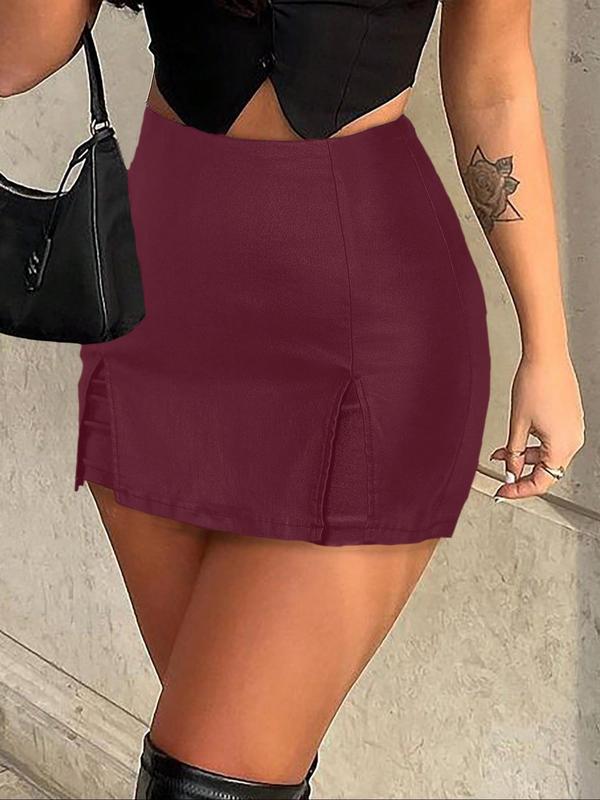 Women's Split Hem High Waist Skinny PU Shorts, Stretchy Zip Back Faux Leather Skort for Holiday Club Daily Wear, Lady Bottoms for All Seasons